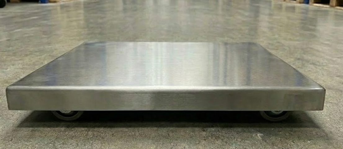 これにより、食品工場・医薬品工場・半導体製造現場など、高い衛生基準や環境基準が求められる現場にも適合した低床台車を製作できます。